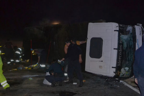 Producto del impacto el camión  Fiat Iveco, se vio desplazado de la cinta asfáltica y terminó contra el alambrado de un campo, falleciendo su conductor, de 25 años de edad y oriundo de La Matanza, en forma instantánea;  mientras que en el Mercedes Benz se movilizaban tres personas  que solo recibieron algunas lesiones, siendo atendidos en el Hospital de la vecina ciudad de Carlos Casares.