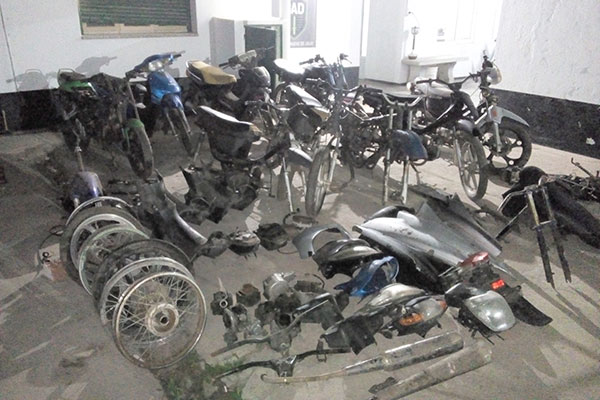 Los tres allanamientos arrojaron el secuestro de 9 motos y gran cantidad de autopartes que tenían suprimida su numeración y carecían de documentación.