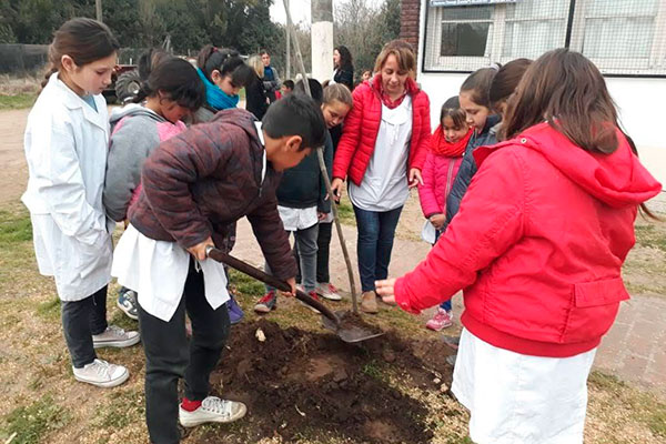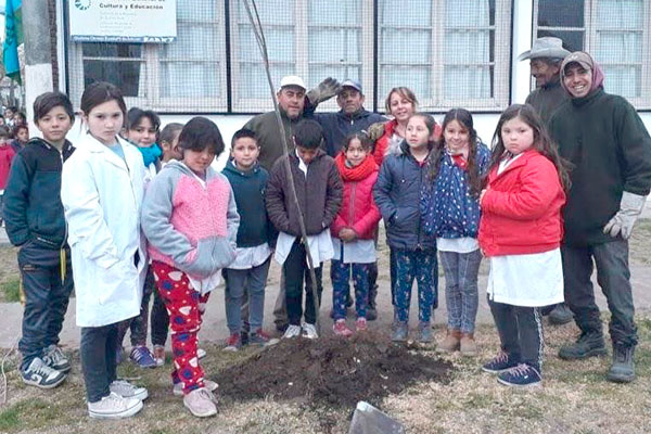Integrantes del Club de Leones de 9 de Julio, continuando con la actividad que viene desarrollando en distintos establecimientos educativos,se plantaron 11 fresnos rojos en la vereda de la Escuela 7 de Patricios. Este establecimiento participa por tercer año consecutivo en este proyecto colocando árboles en la vereda y en el interior del mismo.