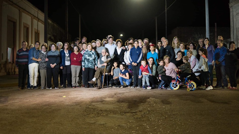 La comunidad se reunió en la calle central de la localidad y al caer la tarde, y antes de encender las luces, el intendente dejó unas palabras a los vecinos.