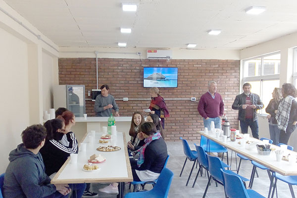 “El salón cuenta con todas las comodidades: mesas y sillas, heladera, Tv Smart, microondas, conectores para celulares, y esta administrado por la concesión del Kiosco”, detalló Balbo, destacando que la obra fue pensada en función de que muchos alumnos debían almorzar en el SUM de la institución, por lo que se priorizó entregar esta comodidad.