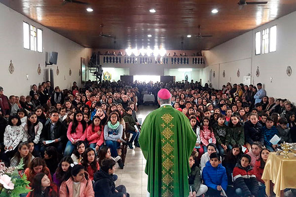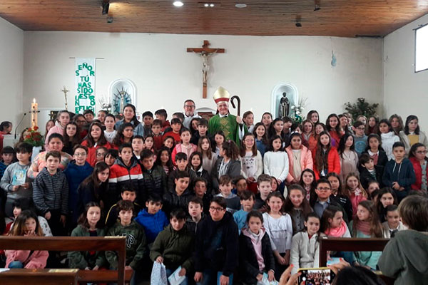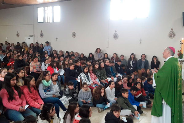 El domingo por la mañana el obispo presidió la Eucaristía de la cual participaron los niños y niñas de catequesis de comunión y confirmación junto a sus padres y padrinos para renovar sus promesas bautismales. Ante una nutrida participación, Mons. Torrado Mosconi comentó las lecturas bíblicas de la misa refiriéndolas a la vida del cristiano y a la realidad concreta de la comunidad cristiana. A continuación, el obispo celebró también el Bautismo de varios niños de los barrios que componen la demarcación parroquial.