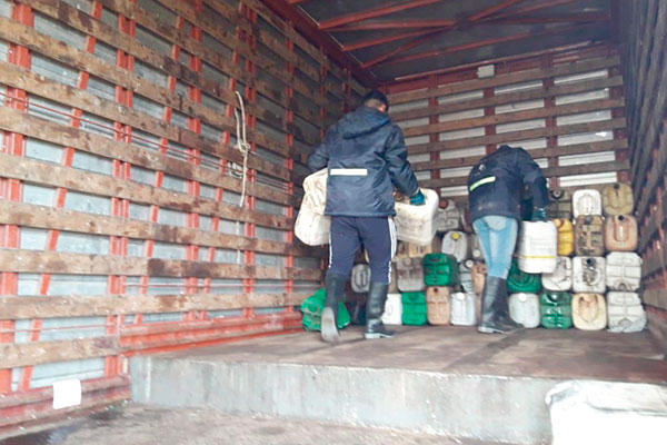 “Los mismos dispusieron que los bidones se carguen en la jornada de hoy (por ayer, lunes), con la salvedad que nos encontramos que de los casi 500 hallados en el lugar, se encuentra la mitad de los mismos; lo que lleva a presumir que en el transcurso del fin de semana alguien retiró una gran parte, saliendo por el camino que lleva a Ruta 65, como se comprueba en el hecho de que varios envases quedaron esparcidos sobre el mismo”, agregó.