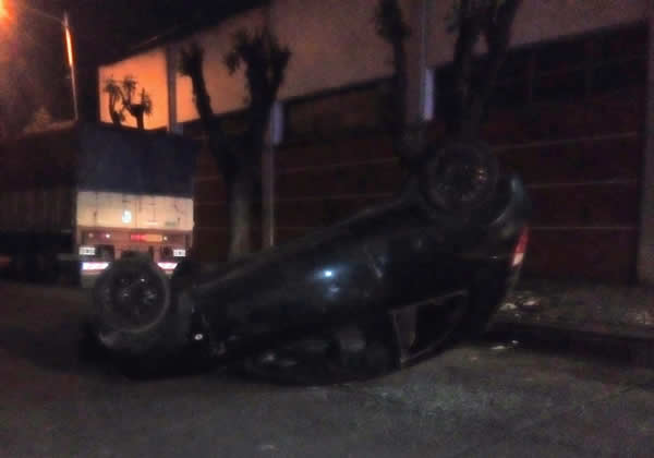 En la madrugada del domingo, a las 0.30 hs., por causas que se desconocen, un Ford Ka de color negro con dos femeninas, habría impactado a un automóvil VW Suran que se encontraba estacionado y volcó, en la calle Gutiérrez al 900, entre Avenidas Mitre y San Martín.
