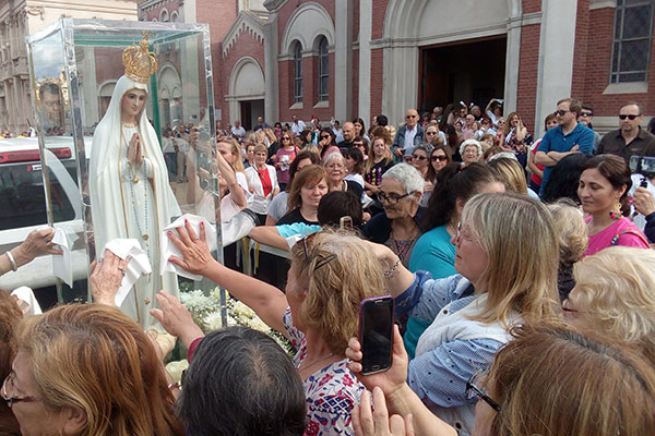 La imagen llegó a Argentina en abril de este año y ya recorrió varias diócesis. El 6 de octubre pasado, el padre Guillermo Gómez, cura párroco de la Iglesia Catedral Santo Domingo de Guzmán y rector del santuario mariano, viajó a la diócesis cordobesa de San Francisco en su búsqueda, bajo el compromiso de acompañar todo su recorrido en calidad de sacerdote custodio.