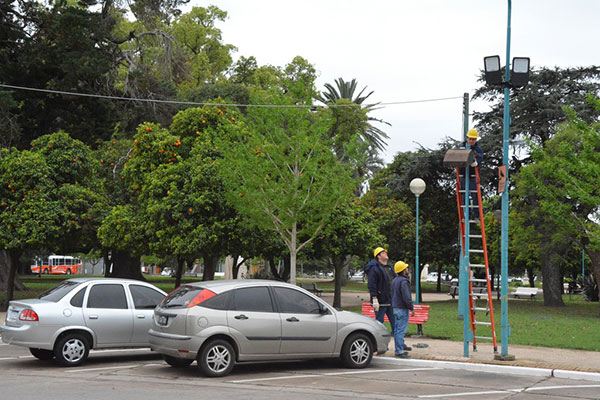 Allí se colocaron siete artefactos de iluminación led de 140 watts, que reemplazan a los antiguos reflectores de sodio, que fueron retirados del lugar.