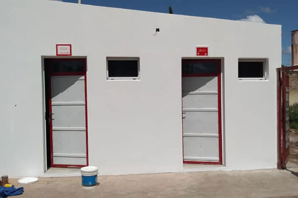 La Comisión Directiva del Club y Biblioteca Agustín Alvarez se encuentra finalizando la obra de los baños de damas y caballeros en el sector visitante.