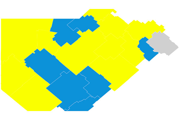 Leve ventaja azul: el Frente de Todos gobernará 70 distritos en el nuevo mapa bonaerense. Con el interior Conurbano más pintado con el azul que identifica al kirchnerismo y el interior sembrado mayoritariamente por el amarillo con el cual se relaciona a Juntos por el Cambio, es muy pareja la distribución de las intendencias entre las dos principales fuerzas que polarizaron la elección de ayer.
