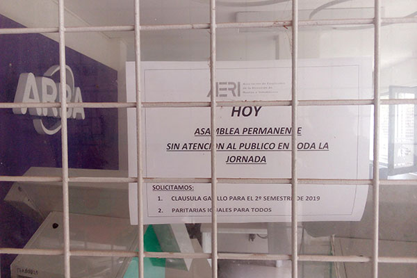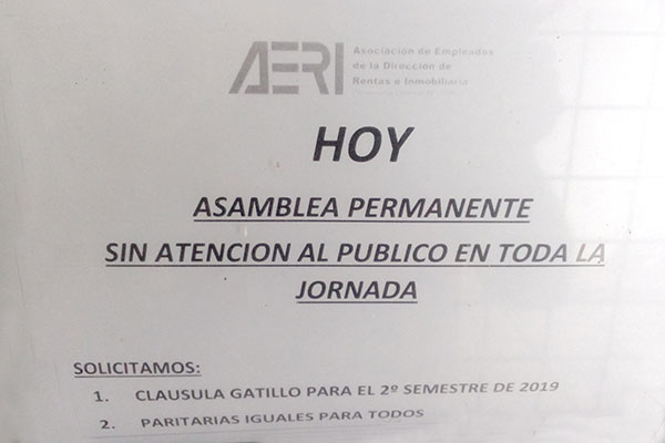 (Arba) de nuestra ciudad mantienen un paro de actividades en lo que hace a la atención al público desde hace 10 días a la fecha, ante la falta de respuestas de la gobernadora María Eugenia Vidal al reclamo de la reapertura de las paritarias
