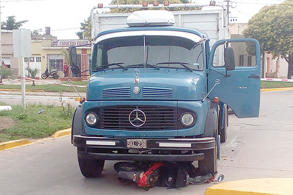 Siendo aproximadamente las 9,25 hs. de la mañana de ayer, por causas que se tratan de establecer, en la intersección de las avenidas Ag. Alvarez y Eva Perón, colisionaron una motocicleta 110 c.c y un camión Mercedes Benz con caja cerealera, siniestro que dejó como saldo horas después el deceso de la conductora de la motocicleta, una joven y apreciada vecina de la comunidad.