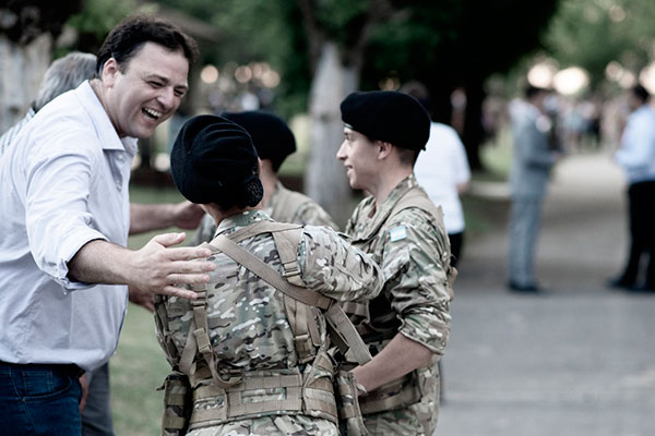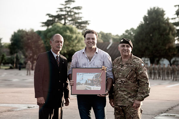 El jefe comunal recibió además en la oportunidad un reconocimiento por el apoyo brindado a este Grupo, se reunió con soldados voluntarios de nuestra ciudad que se incorporaron recientemente al grupo de artillería, luego de la visita que meses atrás realizaran a este medio para la incorporación de aspirantes, y dialogó con el General Lago y el Teniente Coronel Correa, a cargo de la dependencia.