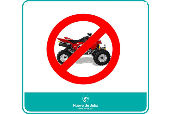 La Oficina de Licencias de Conducir de la Municipalidad de Nueve de Julio informa que en todos los Municipios está prohibida la circulación de cuatriciclos por la vía pública, salvo en los corredores y zonas de circulación aprobados por ordenanza municipal, los que serán oportunamente detallados.