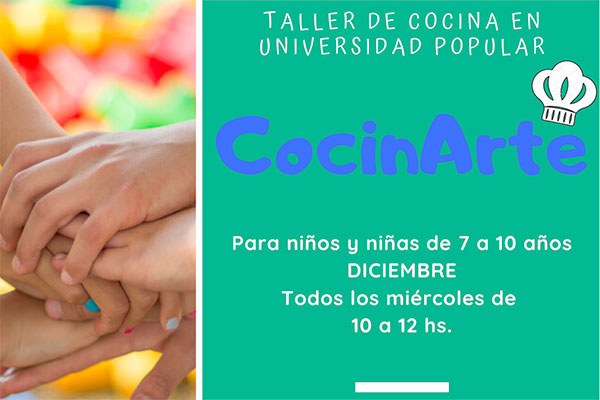 Los talleres “CocinArte”, para niños y niñas, y mediante los cuales los mismos aprenderán pastelería y arte, continuarán durante diciembre, todos los miércoles, en Universidad Popular, de 10 a 12 hs.