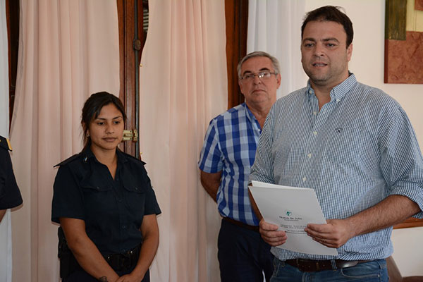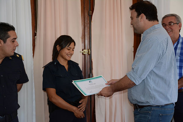 En la mañana de ayer, en su despacho, el Intendente Municipal de Nueve de Julio, Mariano Barroso; junto al secretario de Gobierno, Jorge Della Rocca; y el Subsecretario de Seguridad y Tránsito, Marcelo Hoesé; procedió a hacer entrega de un reconocimiento a la convecina Liliana Montenovo, Oficial de la Policía Comunal de nuestra ciudad, por su excelente desempeño diario en el Palacio Municipal.