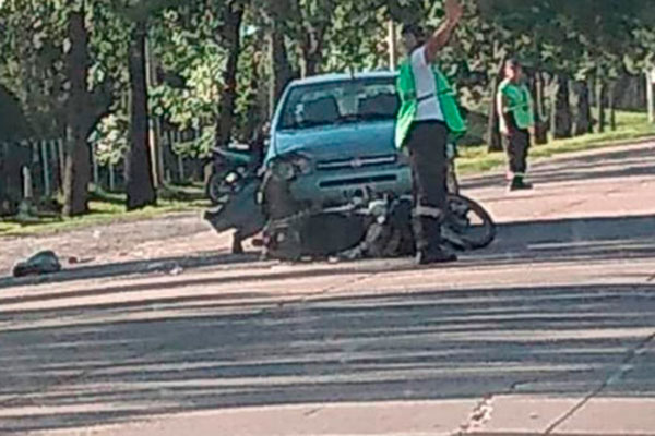 El día sábado 4, en Acceso Perón y Avda. Urquiza, a las 17.45 hs, personal policial tomó intervención de accidente de tránsito donde constata que momentos antes por motivos a establecer, un rodado marca Fiat Palio conducido por masculino de 22 años oriundo de esta ciudad había colisionado contra motovehículo Gilera Smash, conducido por masculino de 63 años oriundo de esta ciudad, quien a raíz de la colisión sufrió lesiones, siendo trasladado en ambulancia al hospital local revistiendo lesiones de carácter leves.