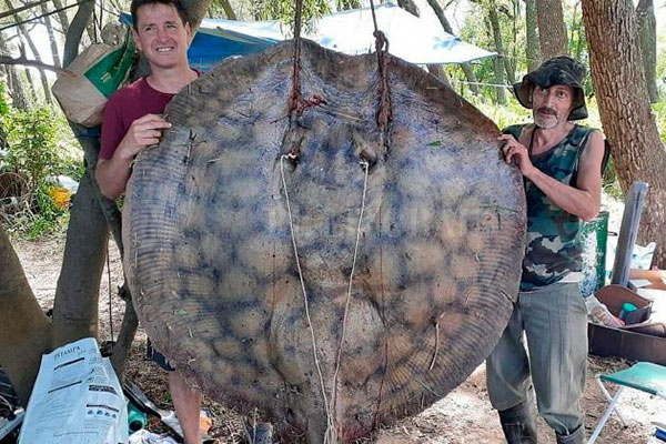 Un grupo de pescadores de la provincia de Santa Fe sacó del agua una raya de más de 150 kilos utilizando rayeros y otro tipo de herramientas ideadas para esa práctica.
