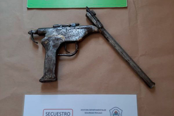 La Estación de Policía Comunal de 9 de Julio informó que en la jornada del martes, siendo las 14 horas aproximadamente, personal de esta dependencia, conjuntamente con SUB DDI Bragado con sede en nuestra ciudad, efectuó un procedimiento en un domicilio de calle Sáenz Peña al 800, donde procedió a la aprehensión de un masculino domiciliado en el lugar, de 17 años de edad, y a quien se le incautó un arma de fuego recortada, de metal plateado, sin marca ni numeración visible, de fabricación casera y calibre 12 mm.; y 7, 9 grs de picadura de marihuana.