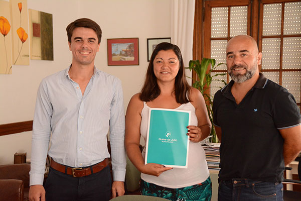 En la mañana de hoy, en el despacho oficial, el Intendente Municipal interino de Nueve de Julio, Paolo Barbieri; junto al Subsecretario de Producción, Víctor Altare, procedió a efectuar la entrega de un microemprendimiento productivo a la convecina de la localidad de 12 de Octubre, Andrea Gorosito; quien desarrollará en esta comunidad un proyecto de confección de prendas de trabajo, que se comercializarán en la zona rural, en localidades y a través de redes sociales.