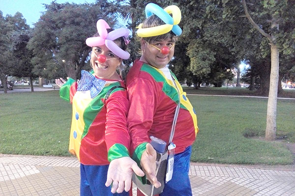 En Plaza Belgrano, los payasos Pipo y Polvorita, quienes vienen desarrollando espectáculos gratuitos en escuelas, jardines y comedores rurales de toda la región, así como a hogares de niños de padres, desarrollaron en esta semana una campaña para recolectar fondos para poder realizar esta tarea solidaria; marco en el que además se solicita la colaboración de los comercios para comprar globos para entregar a los niños visitados.