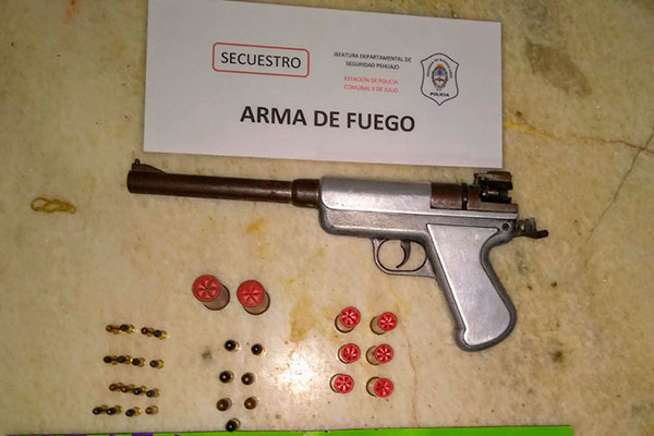 El hecho investigado, tiene relación a un Hurto acaecido en el Club Atlético 9 de Julio donde ignorados sustrajeron la suma de 70.000 pesos, fue dispuesto por Ayudantía Fiscal 9 de Julio y UFI 4 de Mercedes en el referido domicilio particular donde se procedió a la incautación de $ 62.125 , como así también al secuestro de una pistola calibre 14 mm de fabricación casera, sin marca, y sin número de serie; 6 cartuchos intactos calibre 14 mm; 2 cartuchos calibre 12 mm, 7 cartuchos calibre 9 mm. y 16 cartuchos intactos calibre 22.