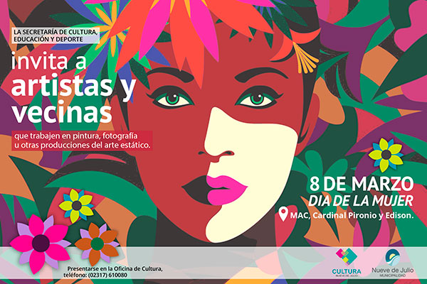 La Secretaria de Cultura, Educación y Deporte, de la Municipalidad de Nueve de Julio, invita a artistas y vecinas que trabajen en pintura, fotografía u otras producciones del arte estático, a participar de la exposición que se realizará el día 8 de marzo en el Museo, Archivo Histórico y Centro Cultural “Julio de Vedia” , Avda. Cardenal Pironio y Edison.