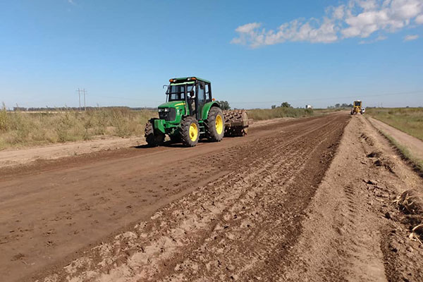 En el marco de la ejecución de la obra de estabilizado del suelo del acceso de 6 km. a la localidad de Patricios, logrado a partir de un trabajo conjunto con las anteriores gestiones nacionales y provinciales, y diferentes canteras de nuestra provincia que donaron la materia prima; se continúa trabajando en el trazado.