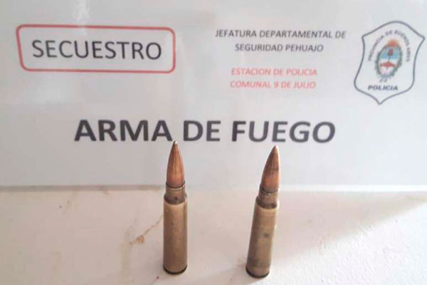 De acuerdo a la información proporcionada por la Policía Comunal de 9 de Julio siendo alrededor de las 09.00 horas del día martes, personal de la dependencia procedió en calles Heredia y San Martín a la interceptación de un masculino de 30 años de edad a quien en su poder se le incautó un frasco de vidrio con 9,8 gramos de marihuana y dos municiones intactas de fusil FAL.