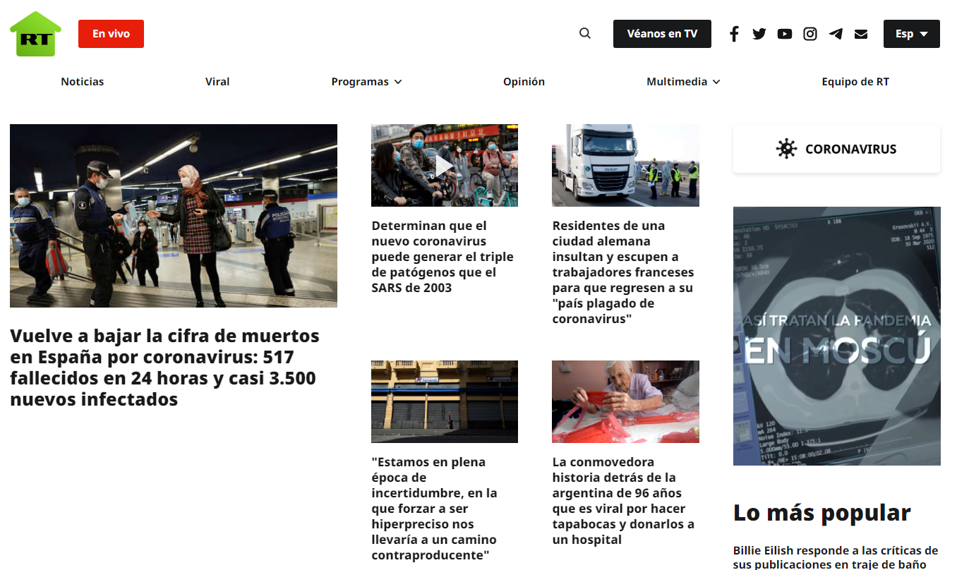 PUBLICACIÓN DEL PORTAL DE NOTICIAS RT EN ESPAÑOL, ES EL PRIMER CANAL DE TELEVISIÓN RUSO EN IDIOMA CASTELLANO CON SEÑAL DE ALCANCE MUNDIAL