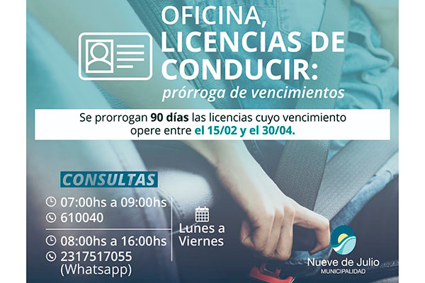 Se recomienda consultar las redes sociales oficiales de la Municipalidad de 9 de Julio para mantenerse actualizado sobre información acerca de Licencias y otras de interés general.