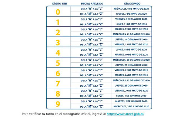 Se detalla adjunto el cronograma de pagos del IFE en el Correo Argentino de acuerdo al último dígito del DNI de los beneficiarios. El cronograma tiene como finalidad informar a los municipios la cantidad de personas que acudirán a la dependencia en las fechas indicadas.