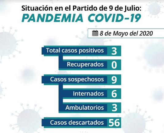 Actualmente existen nueve (9) casos sospechosos o en estudio, de los cuales 3 son pacientes ambulatorios que cumplen aislamiento domiciliario y los seis (6) restantes permanecen internados en Clínica Independencia (4) y Hospital “Julio de Vedia” (2).