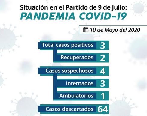 Actualmente existen cuatro (4) casos sospechosos o en estudio, de los cuales uno es paciente ambulatorios que cumple aislamiento domiciliario y los 3 restantes permanecen internados (2 en el Hospital “Julio de Vedia” y 1 en la Clínica Independencia).