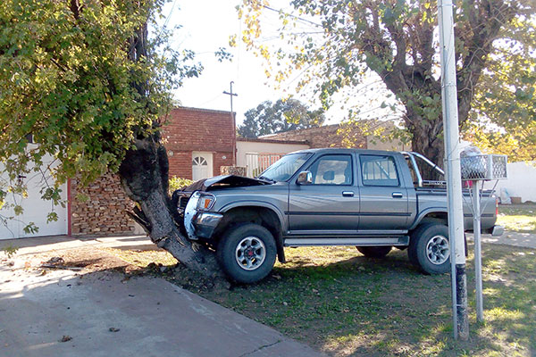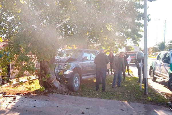 En horas de la mañana de ayer, aproximadamente a las 10, en las inmediaciones de Avda. Urquiza y Antonio Aita, una camioneta Toyota Hilux subió a la acera y derribó un árbol de la misma, presumiblemente luego de que su conductor sufriera una descompensación.