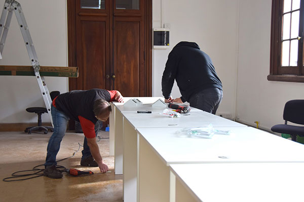 En la Municipalidad de Nueve de Julio, haciendo propicia la menor atención a los vecinos ante la cuarentena por la pandemia por Coronavirus, se trabaja en la modernización de oficinas, a fin de entregar una atención más cómoda, moderna y con mayor celeridad a los vecinos.