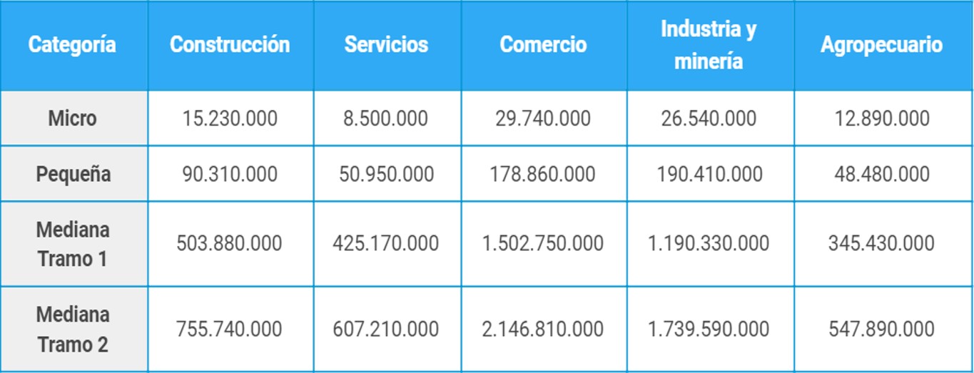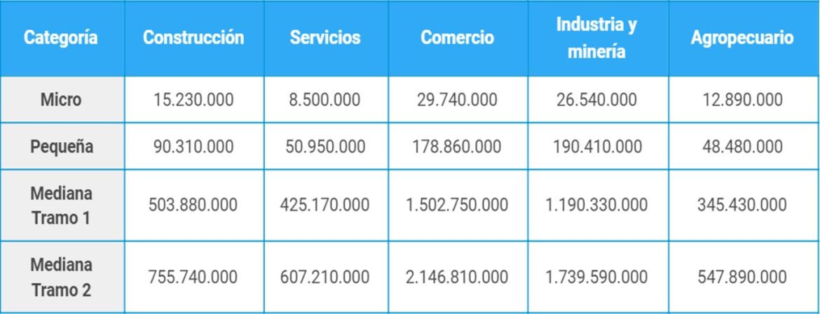 Los montos máximos que se podrán pedir son de $250.000 para microempresas y de $500.000 para pequeñas empresas, de acuerdo a la clasificación de la Secretaría de la Pequeña y Mediana Empresa y de los Emprendedores, que se pueden consultar en link que se encuentra al pié. Los créditos cuentan con un plazo mínimo de un año para su devolución y tres meses de periodo de gracia para el pago del capital e interés.