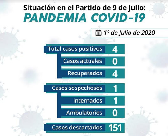 Hasta el momento se registraron cuatro (4) casos positivos desde el comienzo de la pandemia, los cuales ya están recuperados, en tanto que se han descartados ciento cincuenta y uno (151).