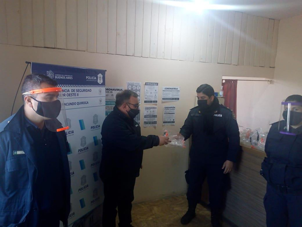 La Municipalidad de Nueve de Julio procedió el pasado lunes a la entrega de mascarillas faciales al personal policial y de tránsito de la localidad de Facundo Quiroga que trabaja en los controles de acceso a la comunidad.