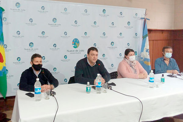 Ayer al mediodía, en el Salón de las Américas del Palacio Municipal, el Intendente Municipal de Nueve de Julio, Mariano Barroso y el Comité de Crisis en Salud del distrito, ofrecieron una nueva conferencia de prensa, en cuyo marco se brindaron detalles de la situación epidemiológica que se presenta en el mismo, luego de que en la noche del día domingo se confirmaran 6 nuevos casos de Covid-19.