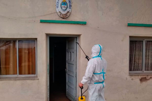 La Policía Comunal de 9 de Julio, informó que el día pasado martes, por solicitud de la Municipalidad de 9 de Julio, personal de Bomberos de Bragado  realizó tareas de desinfección en diferentes dependencias de la misma, como así también en la Subestación de Policía de Dudignac, los Destacamentos de French y Quiroga, y los puestos de vigilancia de Naón, Morea, La Ñiña y El Tejar; en la Patrulla Rural 9 de Julio y el edificio del Puesto de Verificación de Automotores en Ciudad Nueva.