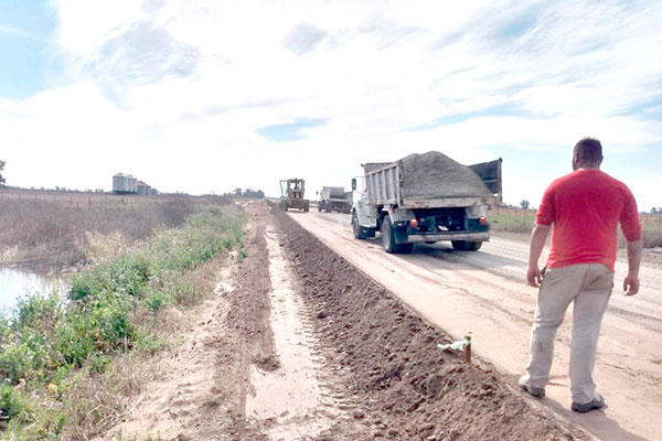 Las obras de estabilizado del suelo del acceso de 6 km. a la localidad de Patricios, logrado a partir de un trabajo conjunto con las anteriores gestiones nacionales y provinciales, y diferentes canteras de nuestra provincia que donaron la materia prima y las que se llevan adelante mediante el trabajo de Vialidad Provincial y la Municipalidad de Nueve de Julio, a través de la cartera de Obras y Servicios Públicos, continúan desarrollándose en sus tramos finales, restando aproximadamente unos 600 metros hasta la intersección con Ruta 5, para posteriormente efectuarse un codo que une al acceso con el mejorado de calles internas de la localidad, cubriendo el perímetro de la Escuela y el Jardín de Infantes.