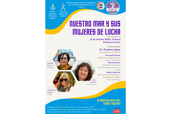 Forja 9 de julio invita al Conversatorio “Nuestro Mar y sus Mujeres de lucha” que se llevará a cabo en plataforma Zoom y será transmitido en vivo por Facebook.