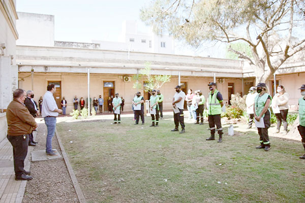 En la mañana de ayer, el Intendente Municipal de Nueve de Julio, Mariano Barroso, encabezó en el patio interno del Palacio Comunal, un sencillo pero muy sentido acto de reconocimiento a los 33 Inspectores de Tránsito que durante más de 180 días cumplieron su labor de control en los accesos a nuestra ciudad, durante las distintas etapas de la cuarentena y el aislamiento social por la pandemia de Covid-19.