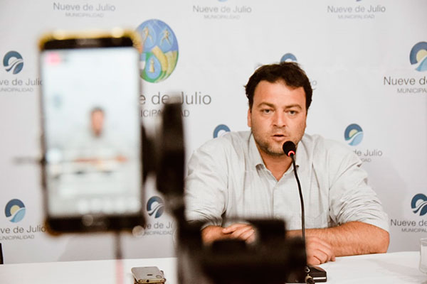 El Intendente Municipal de Nueve de Julio, Mariano Barroso se dirigió ayer a la comunidad, como lo hace todos los días lunes, para referirse a la situación epidemiológica de nuestro distrito en el contexto de la pandemia de Covid-19, en el marco de una nueva conferencia de prensa.