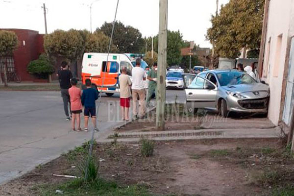 La motocicleta tipo 150cc era conducida por un masculino y el automóvil, un vehículo marca Peugeot, conducido por una mujer, que al impactar con la moto, pierde el control, sube a la vereda y pega contra la pared, mientras el conductor del vehículo de menor porte vuela por el aire y termina en la vereda.