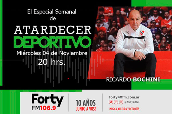 Hoy por la tarde, a partir de las 20 hs., el programa Atardecer Deportivo tendrá la presencia de Ricardo “Bocha” Bochini, legendario jugador número 10 del Rojo de Avellaneda, en su especial semanal.
