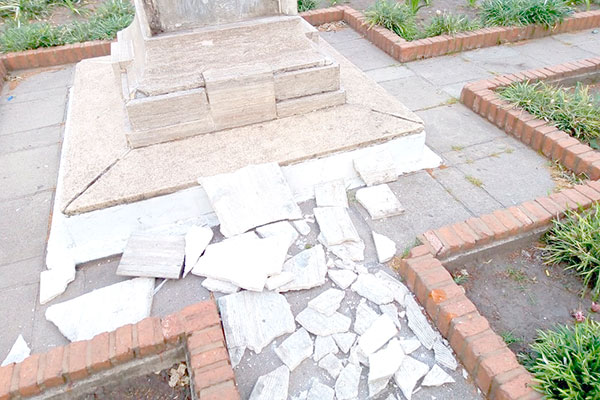 Se registraron roturas en los mármoles del mástil central, el cordel y la Bandera, como así también daños en los canteros del paseo público, como así también en el monumento al fundador de la localidad, Exequiel Dudignac, lo que motivó que desde la Delegación Municipal se efectuara la denuncia correspondiente.