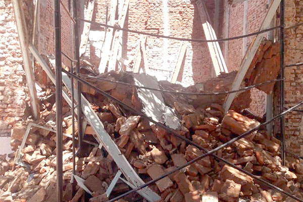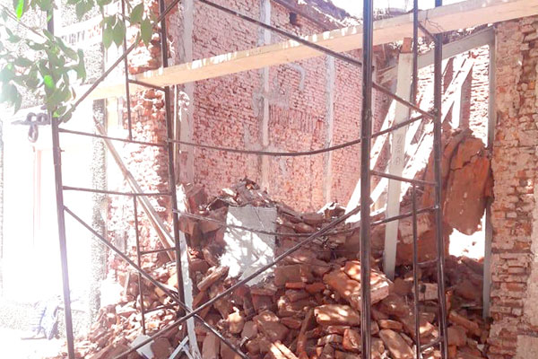 En la oportunidad, dos obreros que trabajaban sobre un andamio en la ejecución de una serie de reformas, notaron que la estructura cedía, produciéndose un derrumbe y pudieron escapar milagrosamente ilesos.