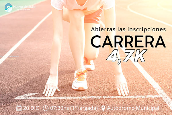 A través de la Dirección de Deportes de la Municipalidad de Nueve de Julio, y retomándose las actividades atléticas tras la pandemia de Covid-19, se trabaja con vistas a la realización de la “Carrera de los 4,7 k”, que tendrá lugar el día domingo 20 del corriente, desde las 07,30 hs., en el Autódromo Municipal “Guillermo Yoyo Maldonado”.