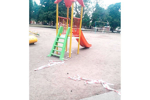 Pocas horas después de los anuncios realizados por el intendente Municipal, Mariano Barroso, y de la colocación de las cintas restrictivas en el sector de juegos en plazas y parques -ya que está prohibido el uso de los mismo y la permanencia en los espacios públicos- las mismas fueron vandalizadas, en este caso en Plaza Italia.