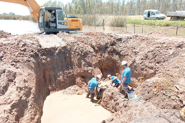 En estos momentos se llevan a cabo las tareas preliminares para la última intervención, ya que la avería está ubicada sobre el sector de la laguna y ante la inmensa cantidad de agua que se registra debido a las condiciones naturales del lugar y las lluvias registradas, no es posible efectuar las maniobras.